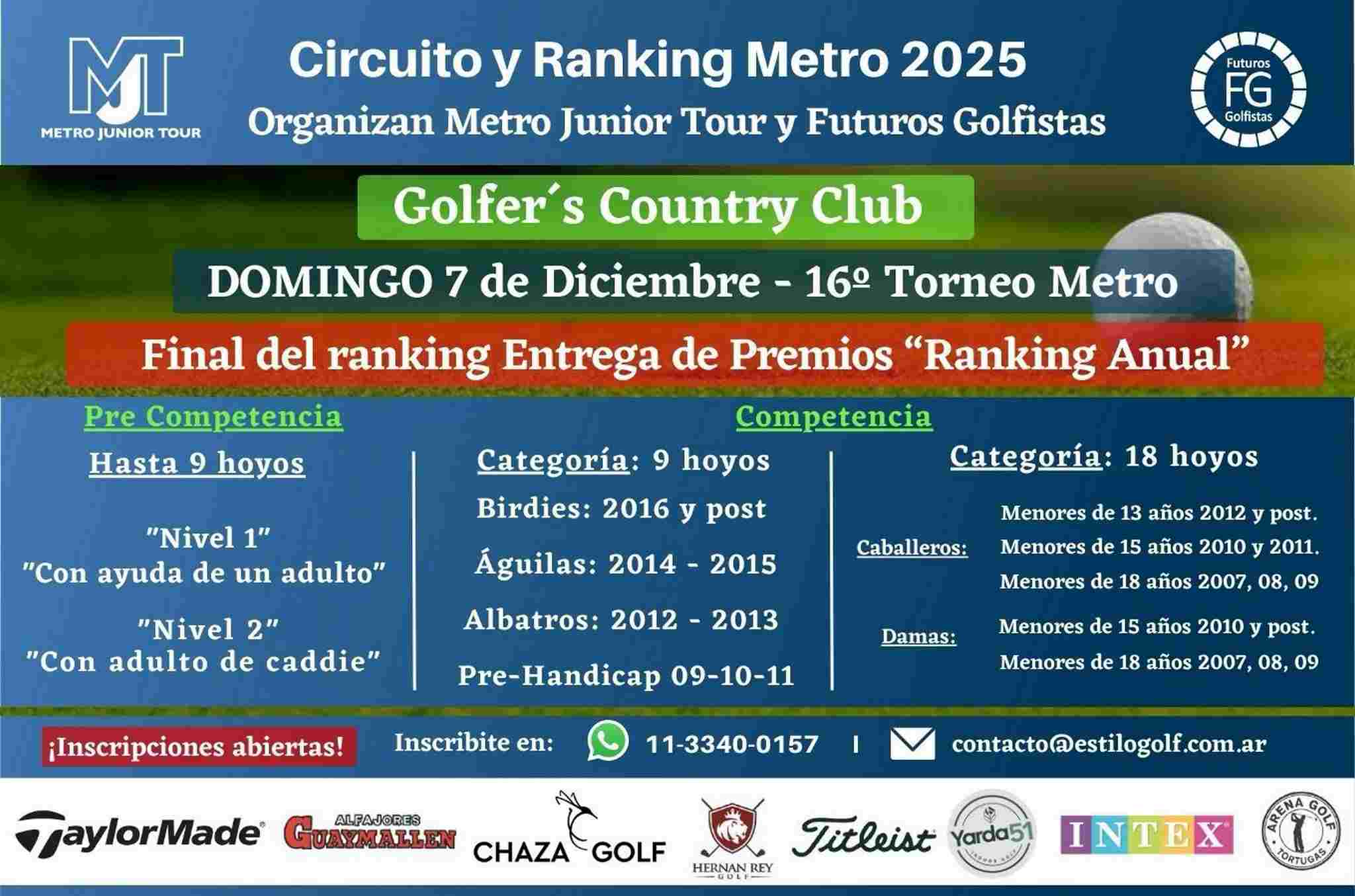 La ultima fecha del Ranking Metro se disputará el 7 de Diciembre en Golfers Country Club para todas las categorías.